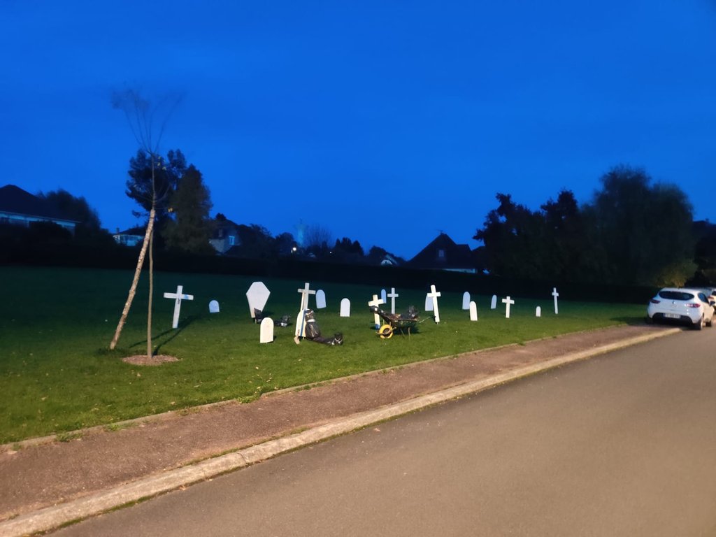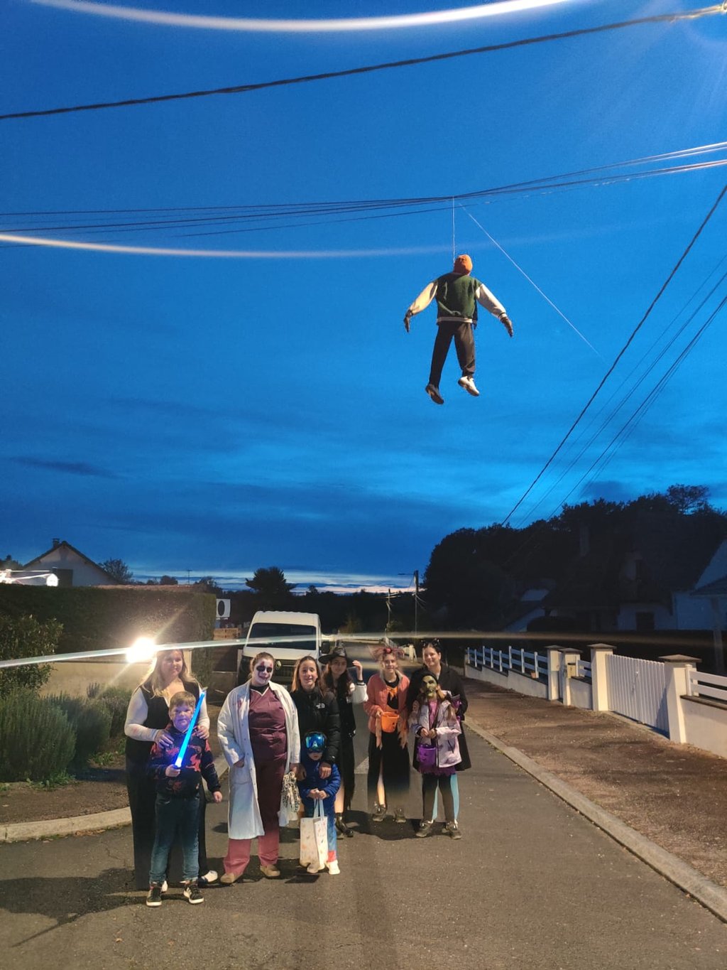 Des Perpezacoises et Perpezacois de tous âges sont en train d'errer en quête de bonbons en cette soirée d'Halloween.