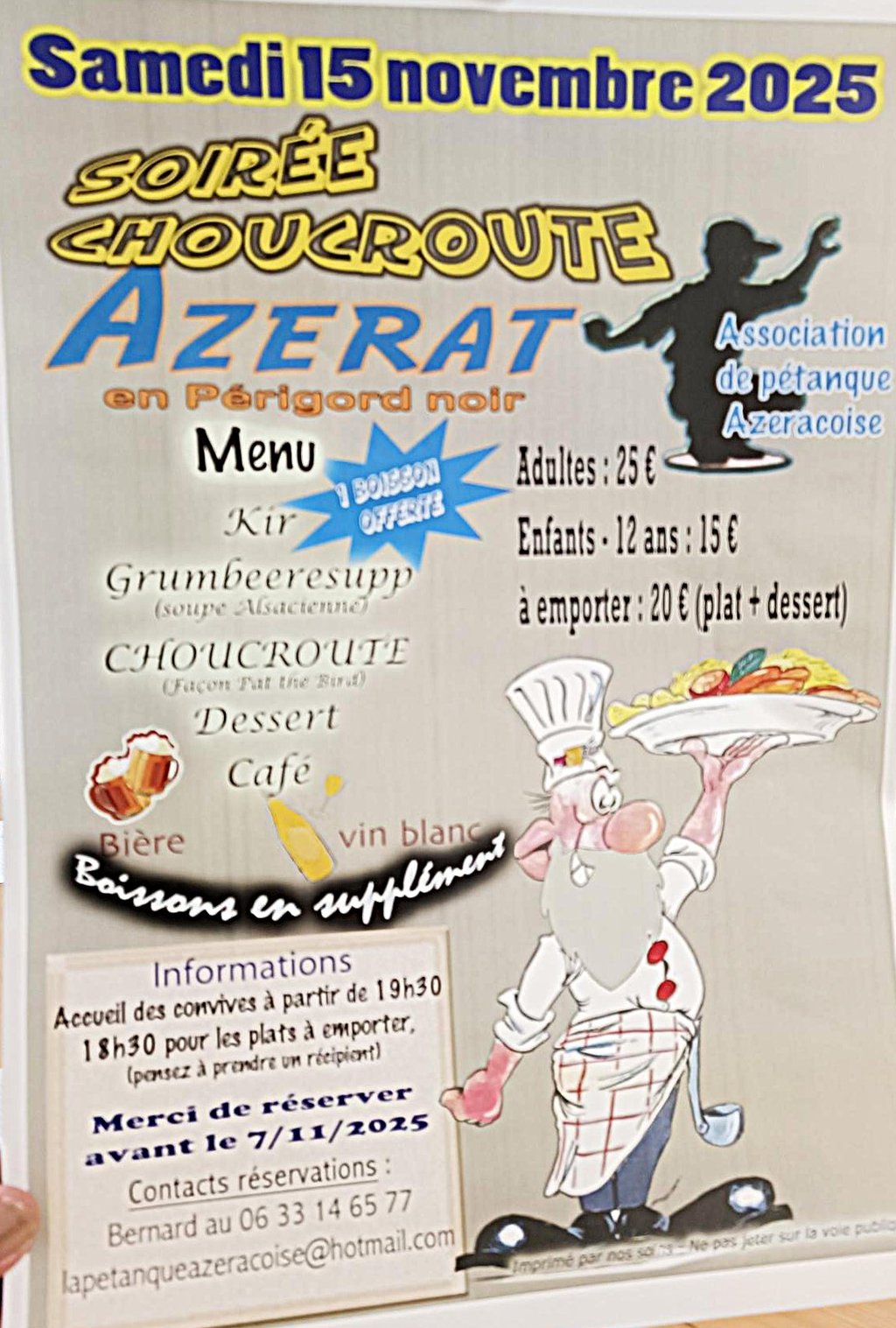 Samedi 15 novembre, la Pétanque Azeracoise organise sa fameuse soirée choucroute.