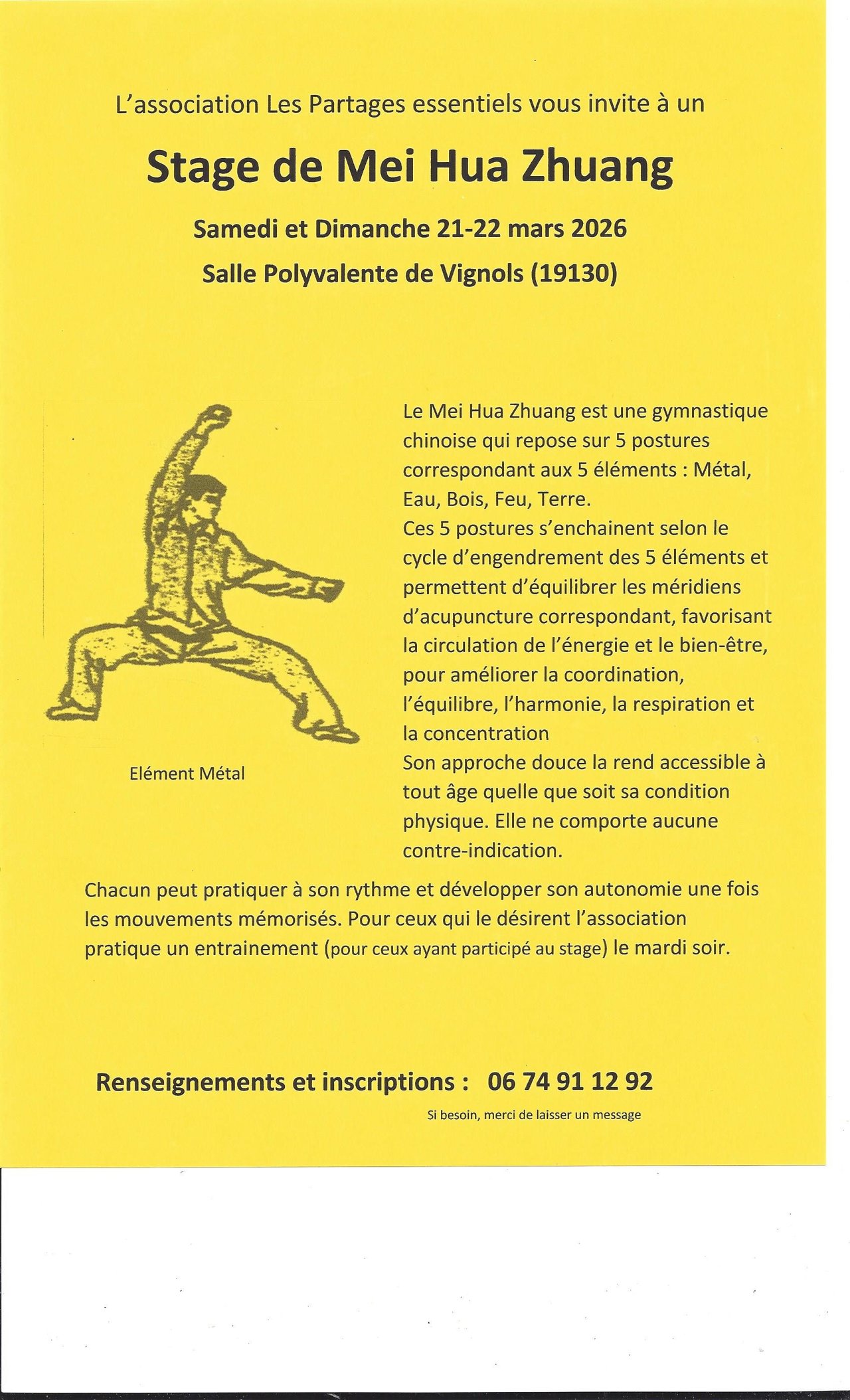 L'association "Les Partages Essentiels" vous propose un stage Samedi 21 et Dimanche 22 Mars prochain de Mei Hua Zhuang - gymnastique chinoise.